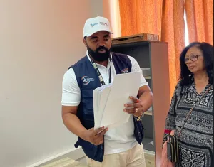 La visita continuó en la Universidad de Namibe (UNINBE), donde las instalaciones del CDOP están ubicadas en el edificio central de la universidad. Los visitantes pudieron corroborar que sus espacios se encuentran plenamente equipados y que ya se están atendiendo estudiantes de forma regular. Junto a Jéronimo Evaristo y otros representantes de la universidad sede, todos los asistentes comprobaron cómo se aplican en la práctica los formularios y herramientas presentados durante los talleres de formación de AngoSAP, se apreció además como evaluar su utilidad en situaciones reales de atención psicológica y psicoeducativa.